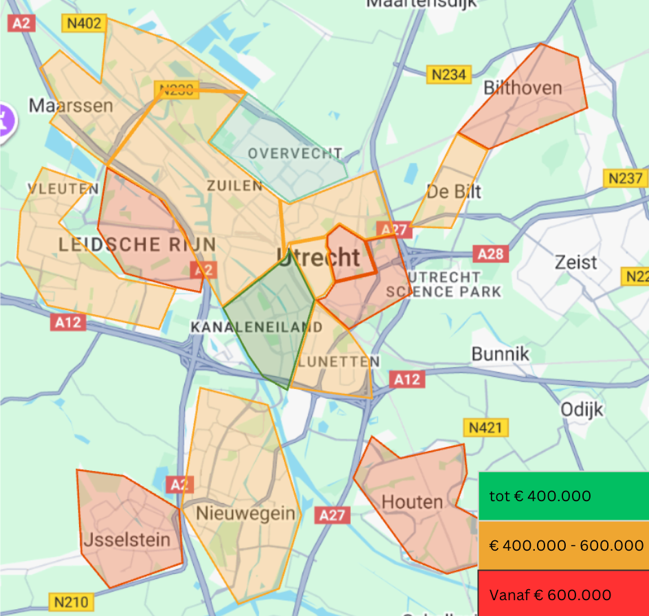 • Leidsche Rijn: explosieve groei (+71% aanbod), hotspots voor expats en gezinnen, starters kunnen hier nog slagen.